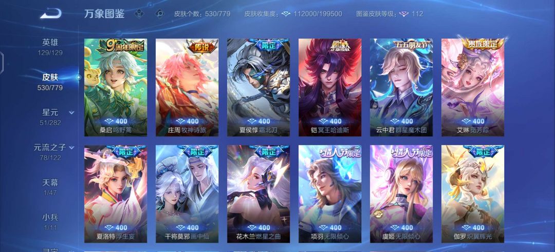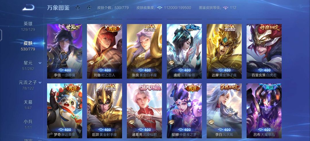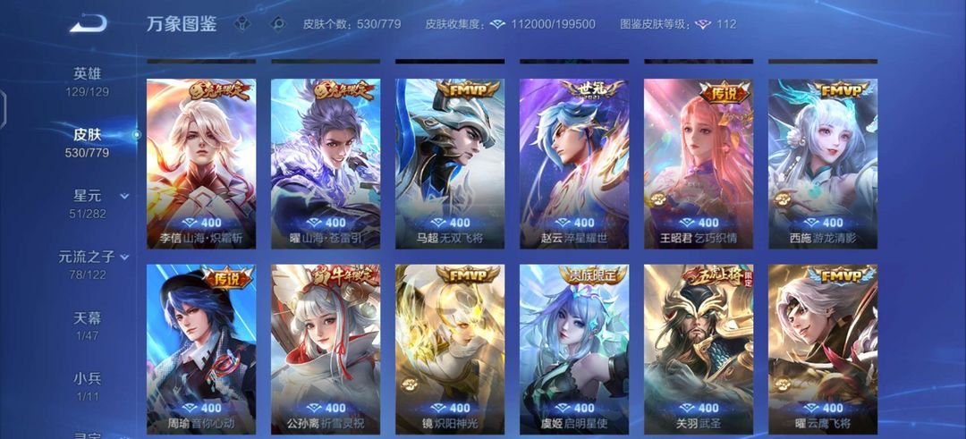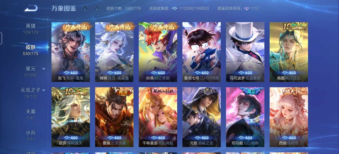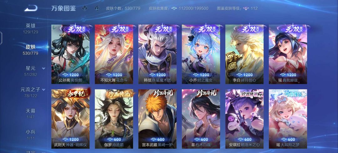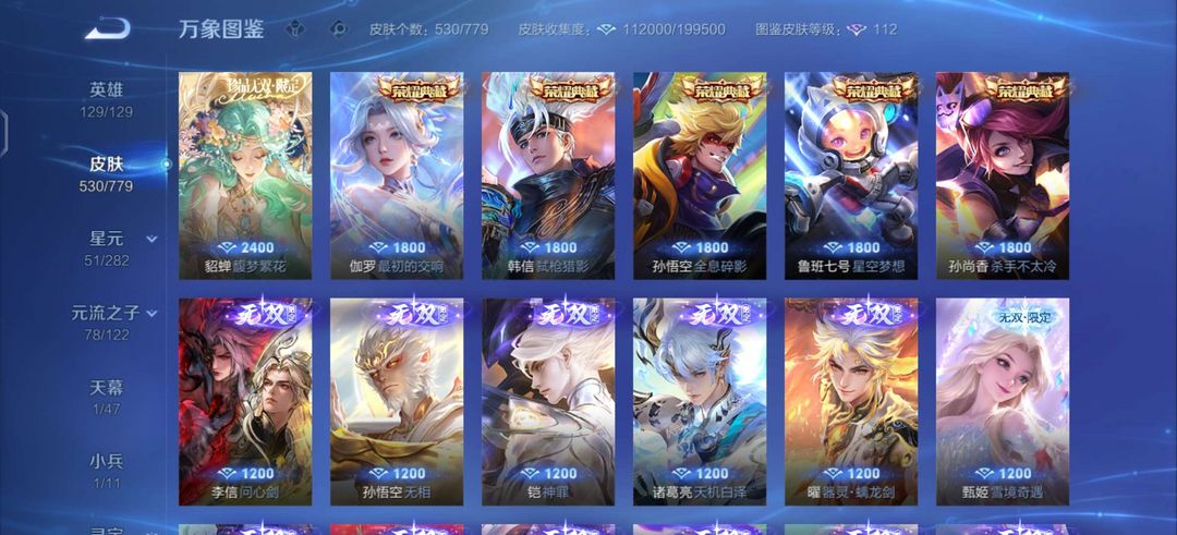 无双V10✨新无双已获取✨大多数手感皮有按键✨无双皮只差一个青丘妲己✨530皮✨满意五星好评
