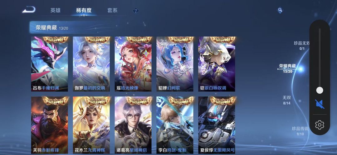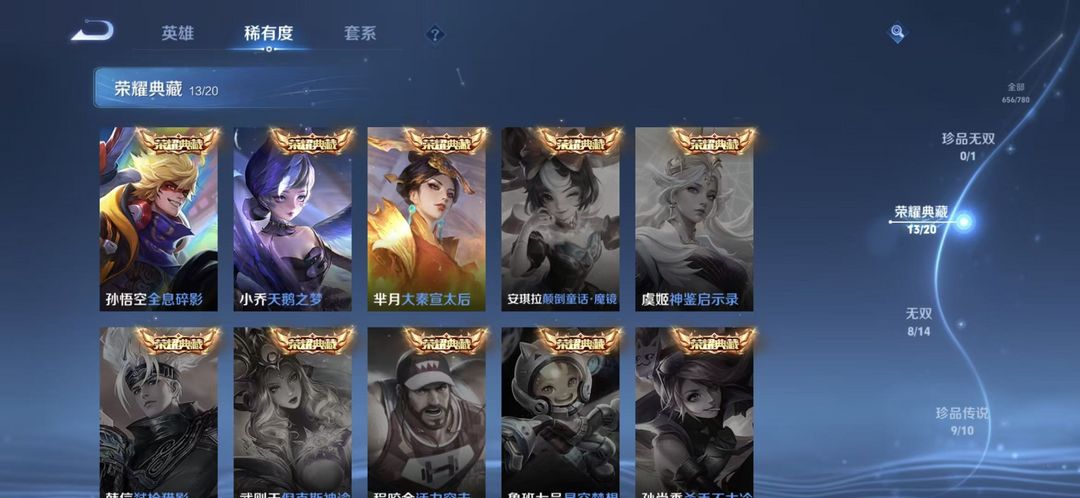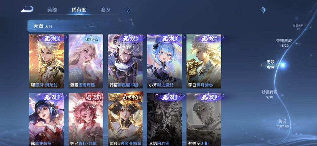 典藏13✨无双8✨珍品传说9✨星传说皮8✨传说118✨史诗218