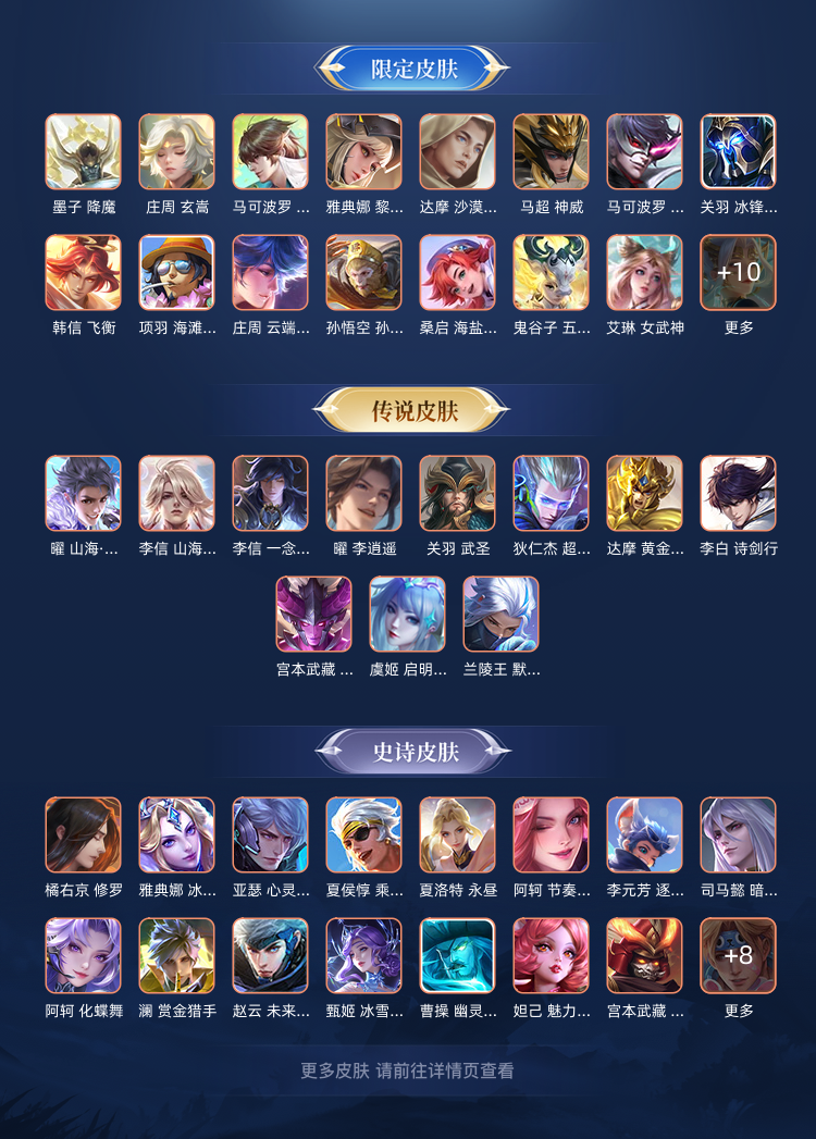 装备描述:贵族等级V8,段位至尊星耀,英雄数量125,典藏皮肤数0,皮肤数量200,无双飞将/默契交锋(兰陵王)/李逍遥/惊梅引/神威/黑崎一护/傲雪梅枪/无双飞将/默契交锋(兰陵王)/李逍遥/惊梅引/神威/黑崎一护/傲雪梅枪
