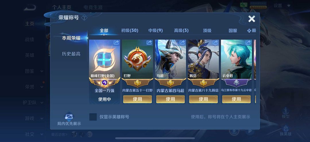 (禁玩巅峰赛)本周马超和韩信省标在榜,打野千强,孙悟空无双限定,78段打野路,历史8个小国