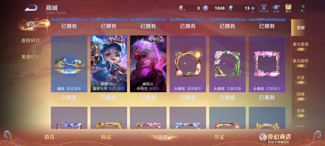 瑶荣耀典藏,李信无双,伽罗珍品,马超马年,司空震限定