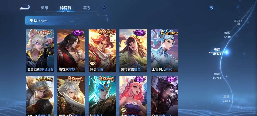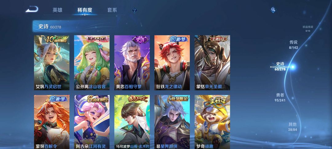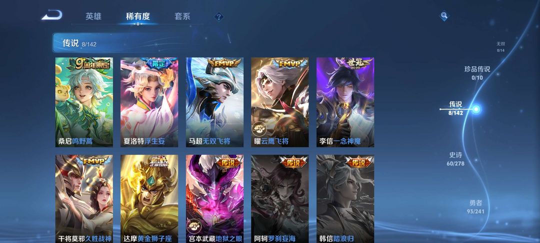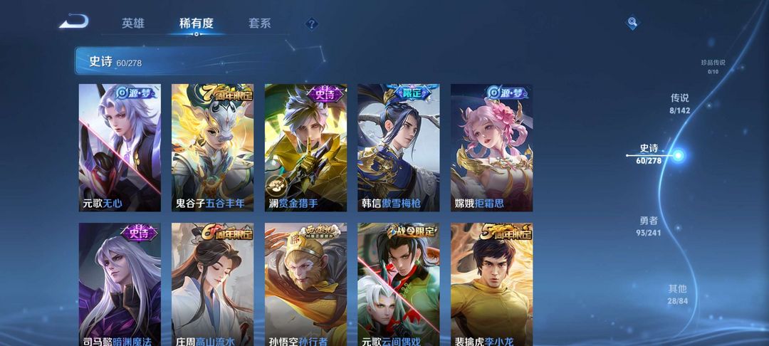 8传说,60史诗,除嬴政武则天外全英雄,铭文都150