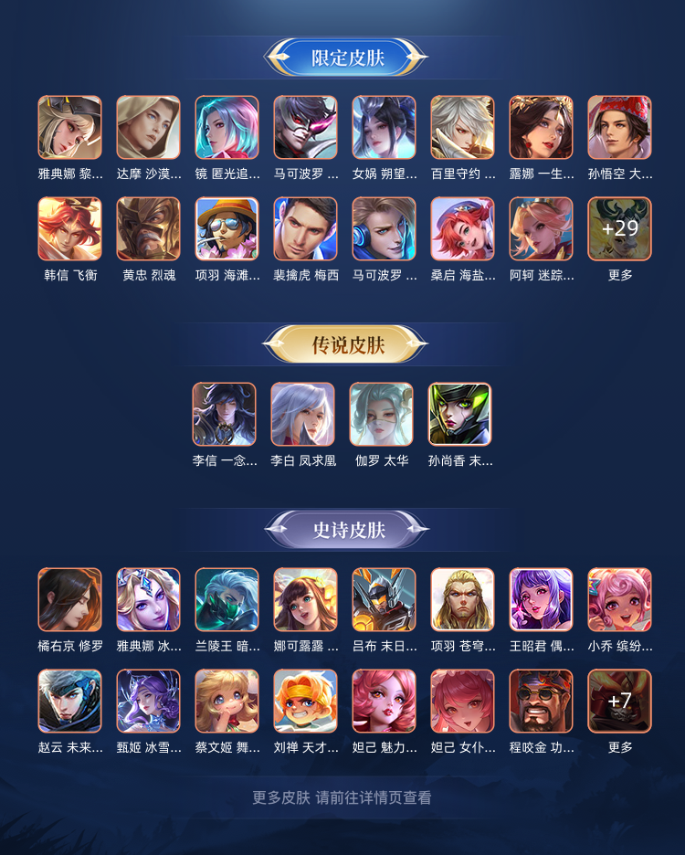 v7凤求凰,大圣娶亲,梅西,末日机甲等多款限定皮肤。
