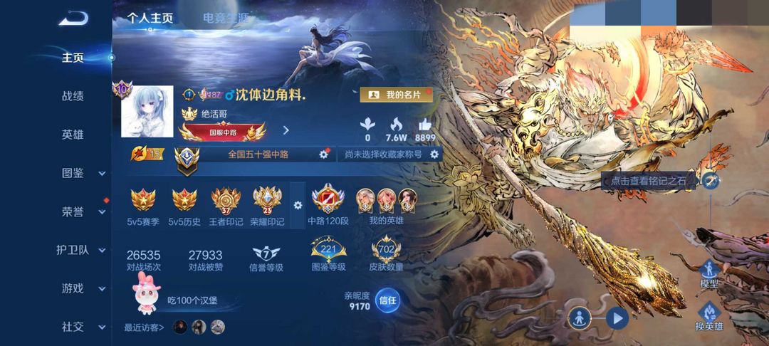 正式服120段在榜百段中路✨顶尖法王高胜率⚡猴子无相新皮❤️满典藏满无双✨中路天花板历史5个2万战力