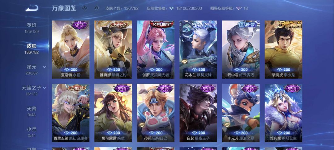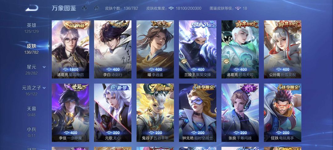 荣耀典藏星域神启诸葛亮祈雪灵祝李逍遥诗剑行逐梦之影默契交锋一念神魔天狼溯光者永昼晚萤大圣取亲紫霞仙子