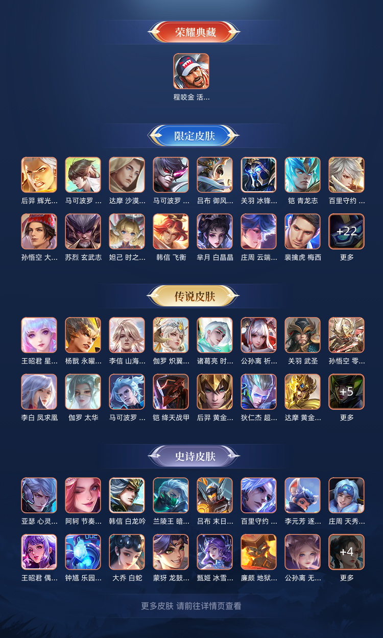 126英雄233皮肤 蛇年澜 地狱火 敖隐 苍穹之光 李逍遥 绛天战甲 炽日神光 王者段位
