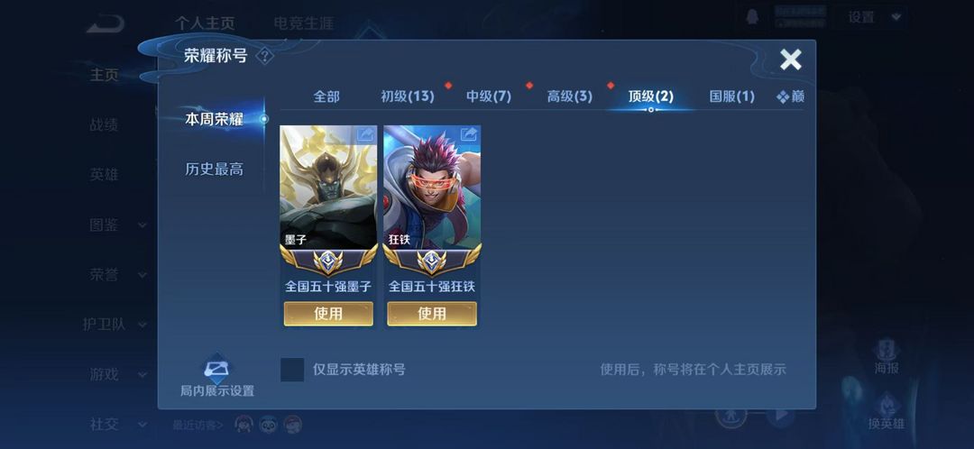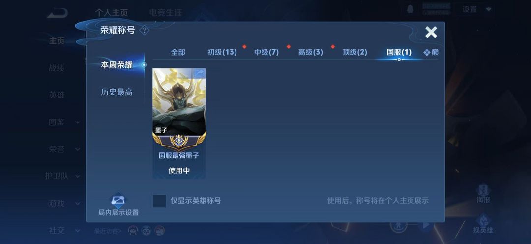 (高危不能排位)3月正式服在榜国服墨子⭐巅峰2300千强框⭐在榜五十强狂铁⭐超多省级限定皮肤⭐