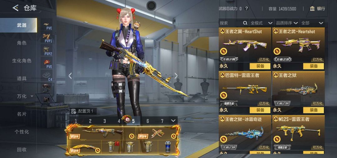 装备描述:巴雷特雷霆王者/M4雷霆王者/女团皮/势熔岩皮/心至尊/生化武器/女团角色,欢迎大家来租