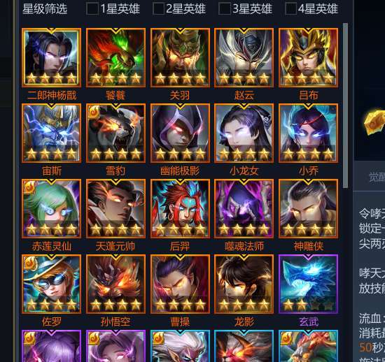 V8有觉醒后裔猴子杨戬龙影八戒雪豹刺客神雕曹操小乔大狗等热门觉醒。有蓝钻会员全金币英雄和部分积分英雄