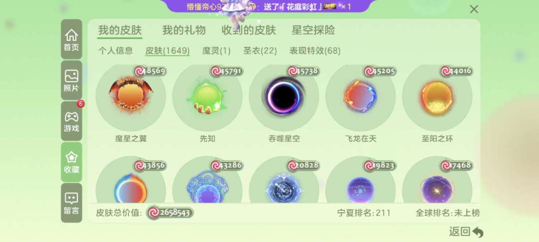 装备描述:贵族皇一先祖之魂飞龙在天敬请期待各种稀有皮肤