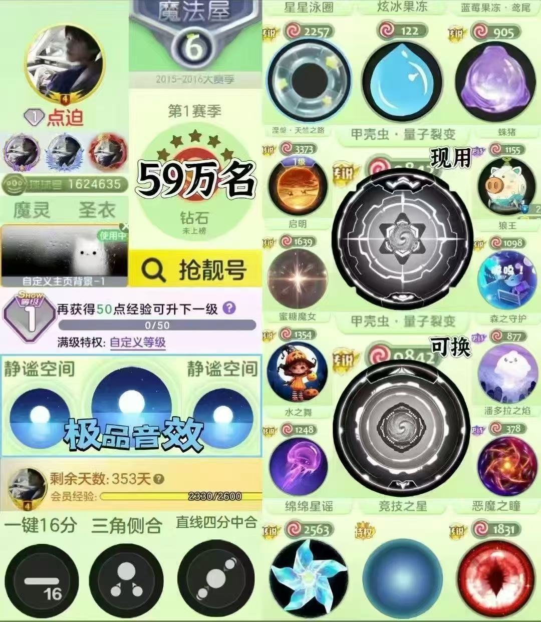 静谧空间*1秀满赛季年卡59万排名号内吐*黑十字架量子裂变甲壳虫*水滴*恶魔之瞳*绵绵星谣*竞技之星