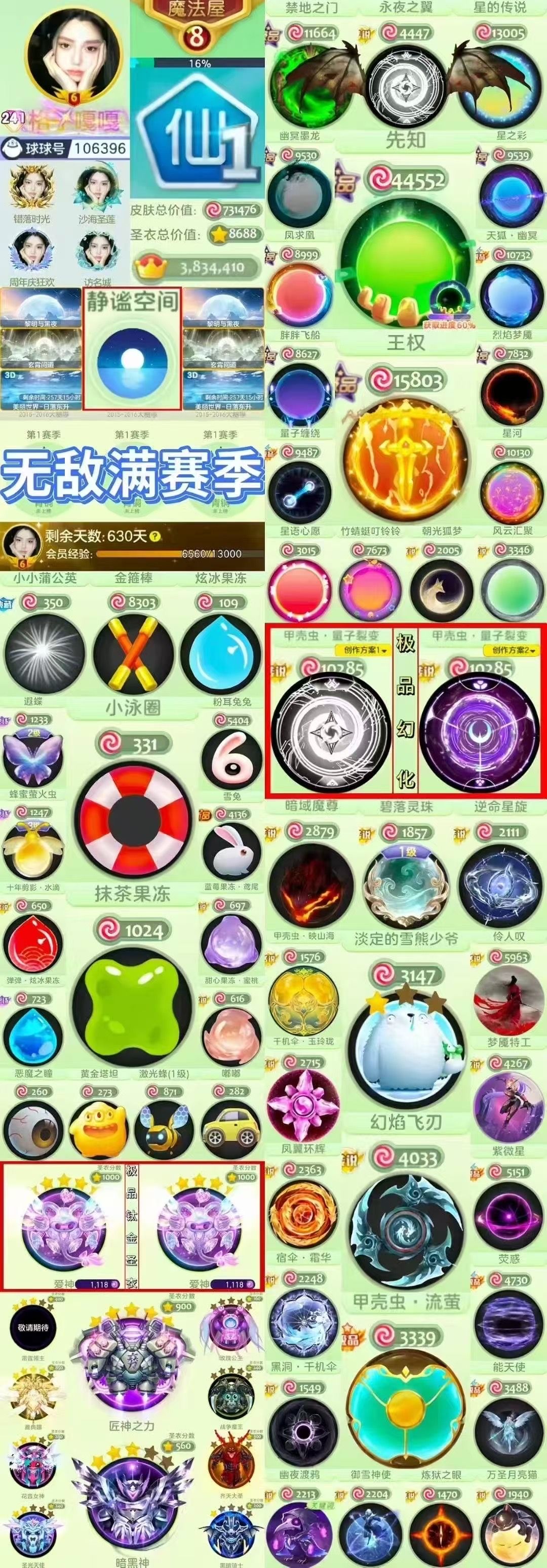 静谧空间*满赛季2年卡人上人内吐【幻化量子裂变*幻化甲壳虫流萤*大白水滴泳圈*鲸圆圆*幻化千机伞】