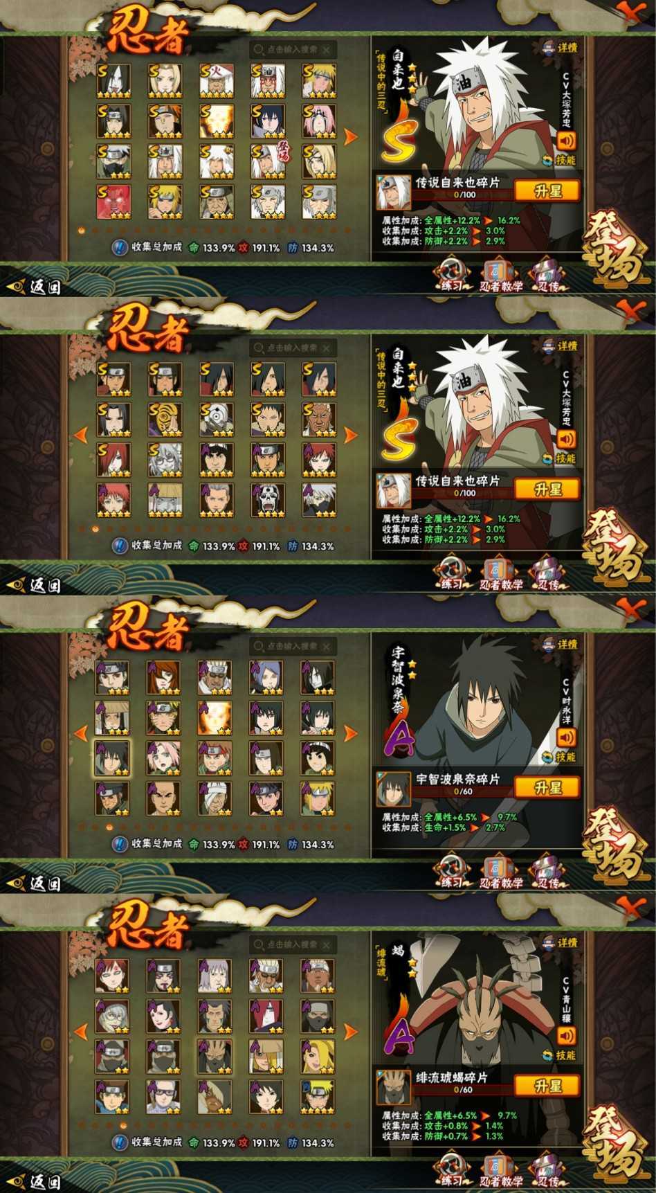 须佐卡卡西♉忍战李♐百战佩恩♋忍战雷影♑死门凯♐秽土阿斯玛♓青春哥