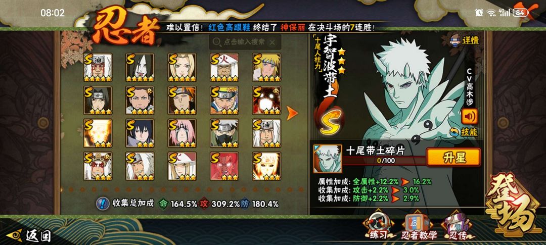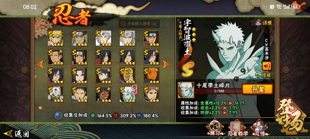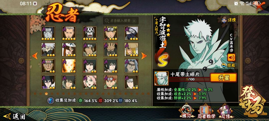装备描述:全 高招 A S 带土仙人巳月已出 五影会谈斑侠影佐助大野木已出 55s 水门#再不斩# 暴怒鸣人已出 全高招 AS 自来舍人已出#漂泊带土 蝎#卡卡西已出#须佐带土#百战佩恩创立柱间#创立斑#漂泊小南#红夜面具男#漂泊佩恩#紫狗#九喇嘛#死门凯,带土,,,937区,排行榜3名,秽土三代 秽土斑 秽土二代,白面具 暴怒带土 天道超,鲛肌融合。简介不重要,看图片。