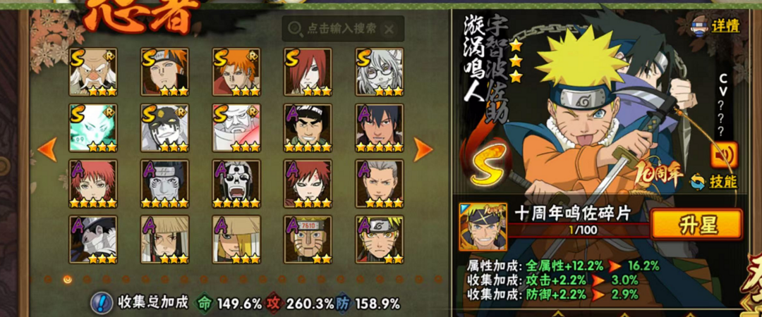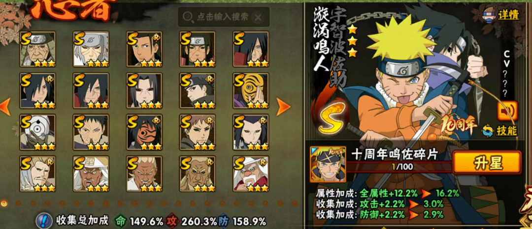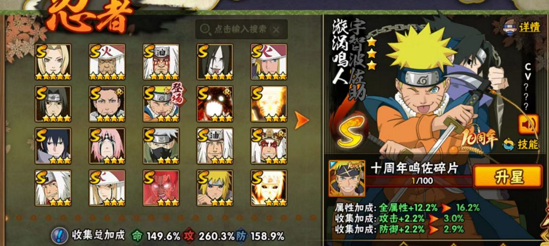 苹果322忍者48S二千四万战力✨十周年鸣佐暴怒六尾九喇嘛水门三代目风影✨大筒木舍人须佐卡卡西多高招