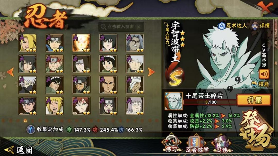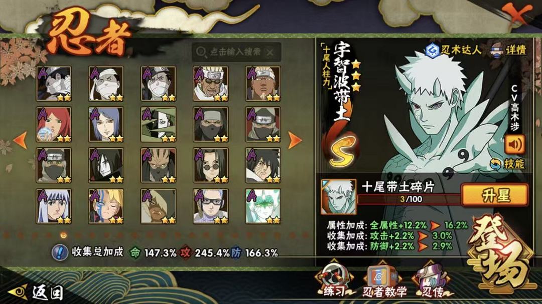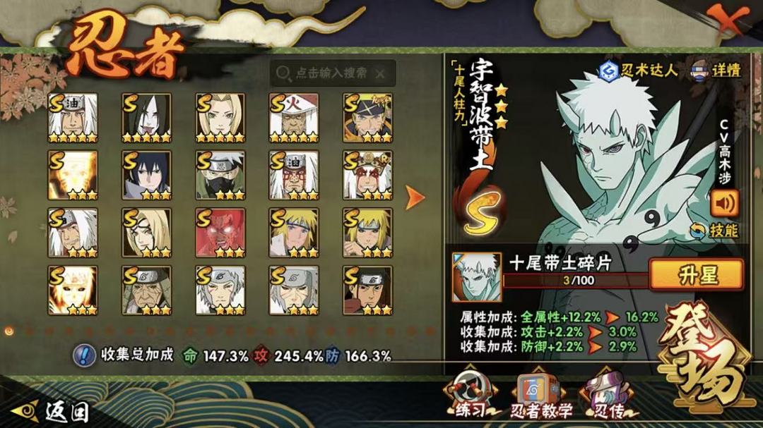 限制: 租号3次及以上 |装备描述:42S❤十尾带土❤九喇嘛水门❤须佐卡卡西❤暴怒带土❤忍战带土❤永恒佐助❤忍战雷影