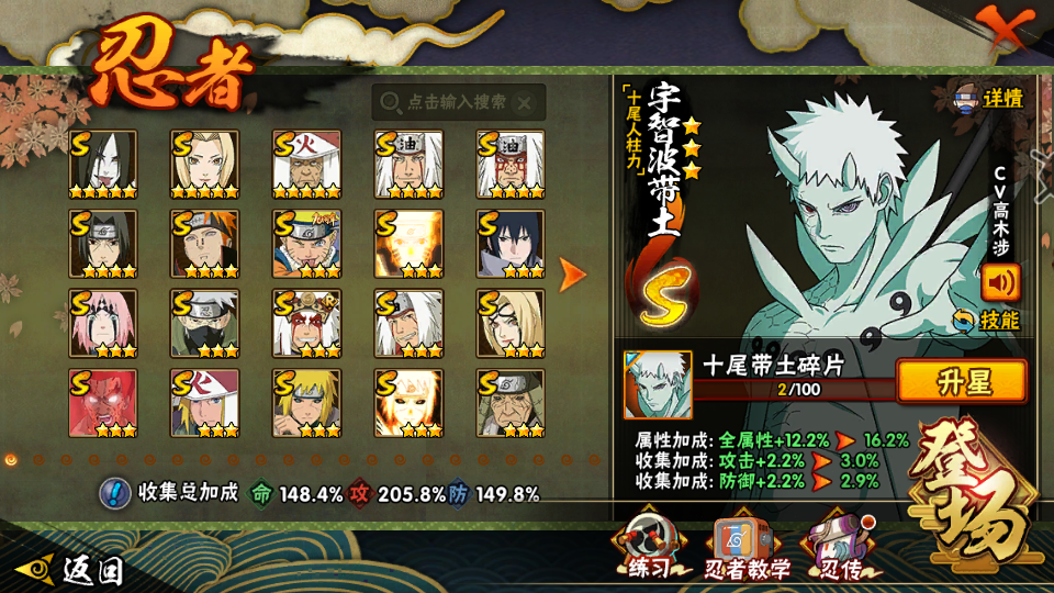 49S★十尾带土★须佐卡卡西★须佐止水漩涡博人★九喇嘛鸣人★木叶创立斑★忍战樱★死门凯★忍战带土