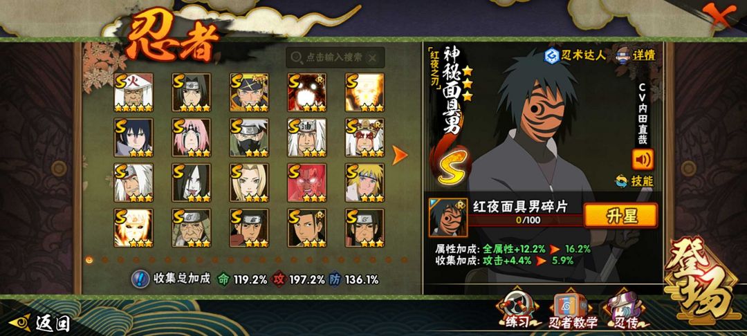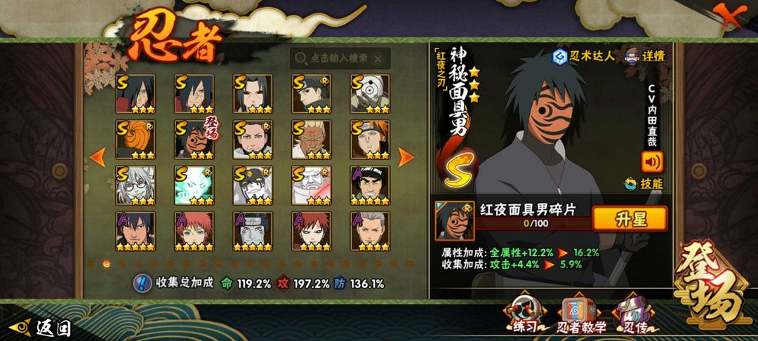 VX区♈34S♈54A♈九喇嘛水门♈五影斑♈侠隐纲手+专属蛞蝓+侠隐兜♈全高招A