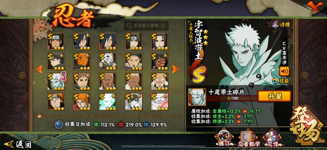 36s 十尾带土已秒 一千八百万战力 基本上热门忍者都有
