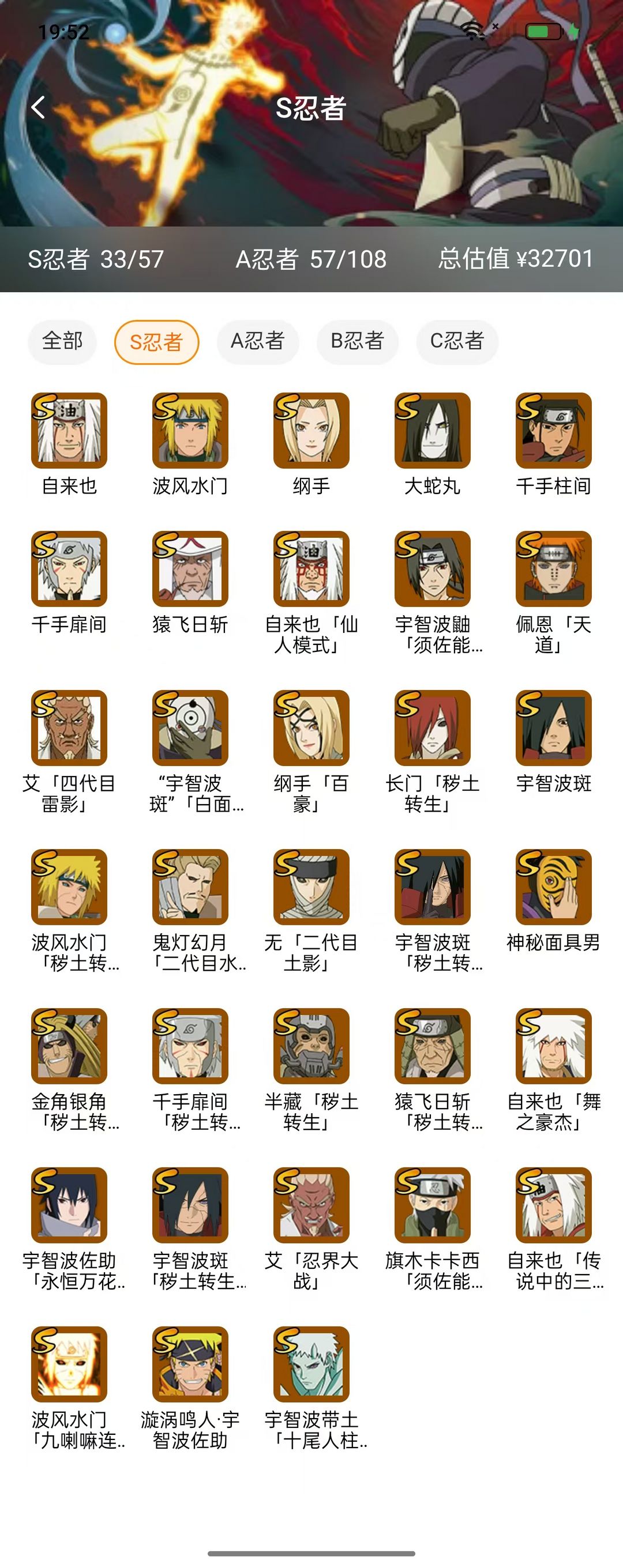 限制: 租号3次及以上 |装备描述:33S❤十尾带土❤️九喇嘛水门❤️须佐卡卡西❤秽土解斑❤暴怒带土❤疾风咒佐❤永恒佐助