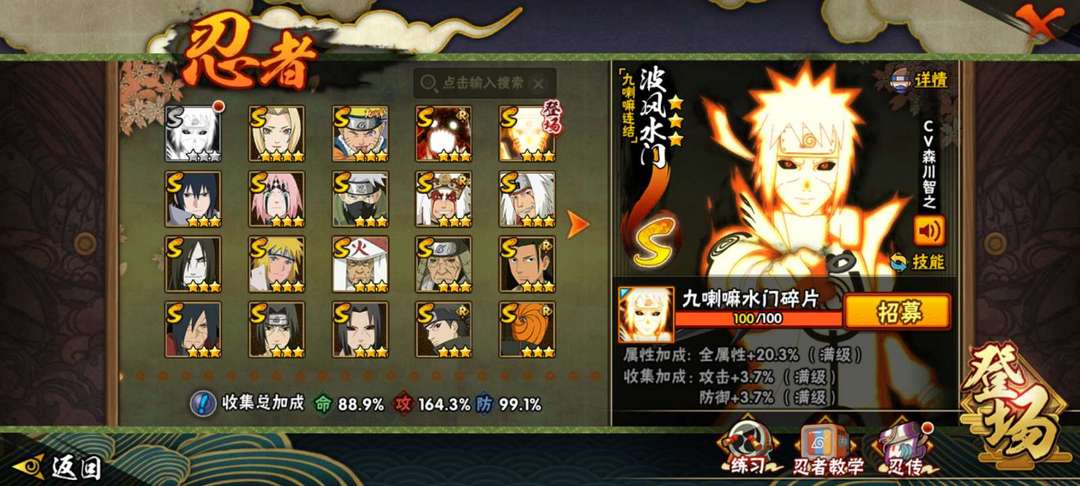 装备描述:拥有大七班骨架,清水,红叶带土,外星人,秽土鼬。