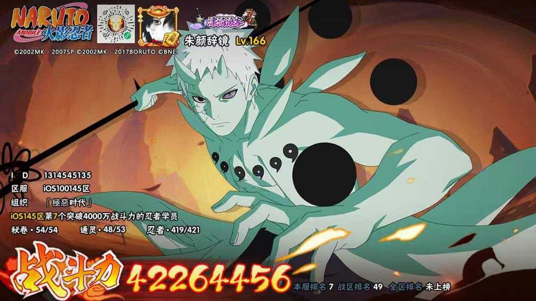 六道带土已秒✨4200万战力✨56S✨全忍者全通灵✨多五星四星忍者✨