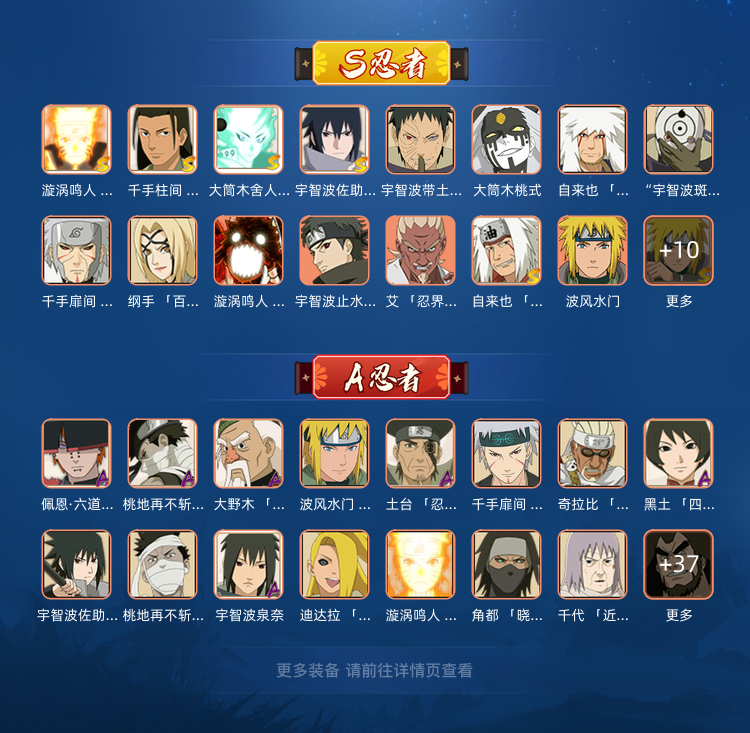 装备描述:漂泊系列基本都有,其余忍者看图,排位随意,不可出现毁号行为