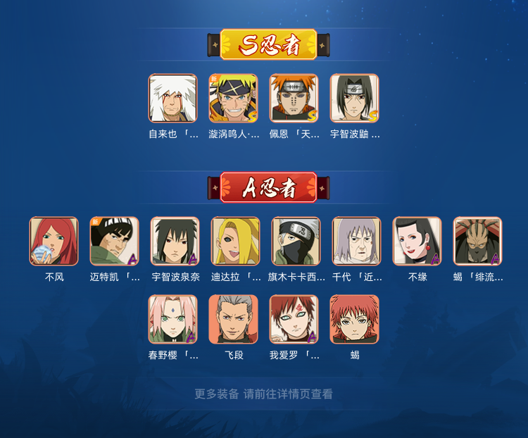 3S 10A忍战卡卡西 秽土迪达拉 百豪樱 忍战我爱罗 须佐鼬 百战佩恩 绯流琥蝎 不风