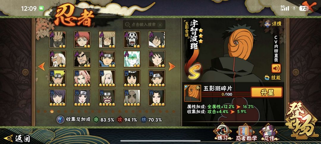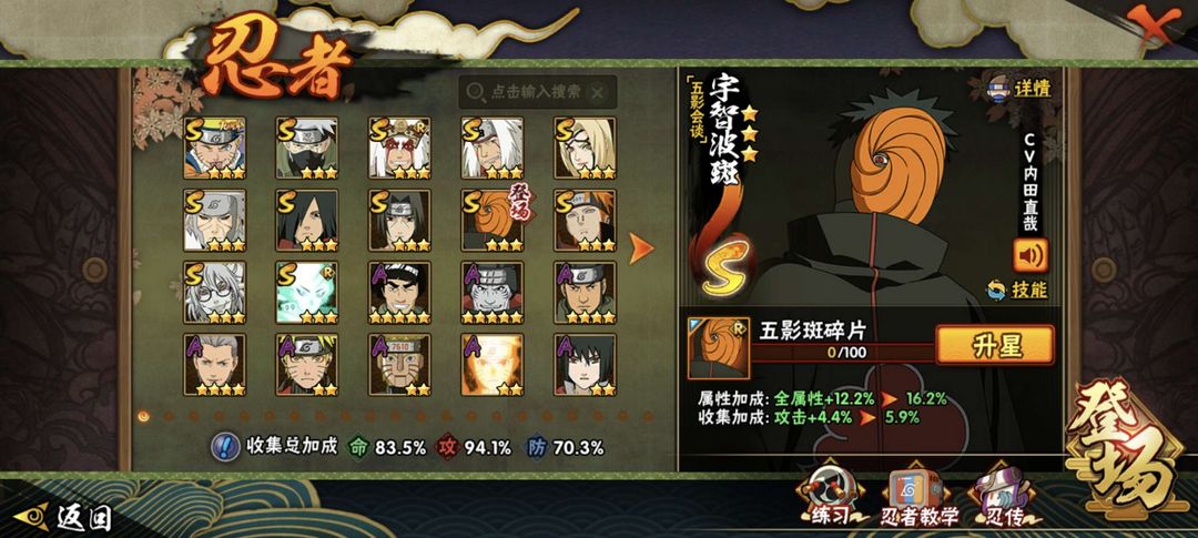 装备描述:五影斑 秽土二代 百豪纲手 传说自来也 仙人兜 宇智波斑