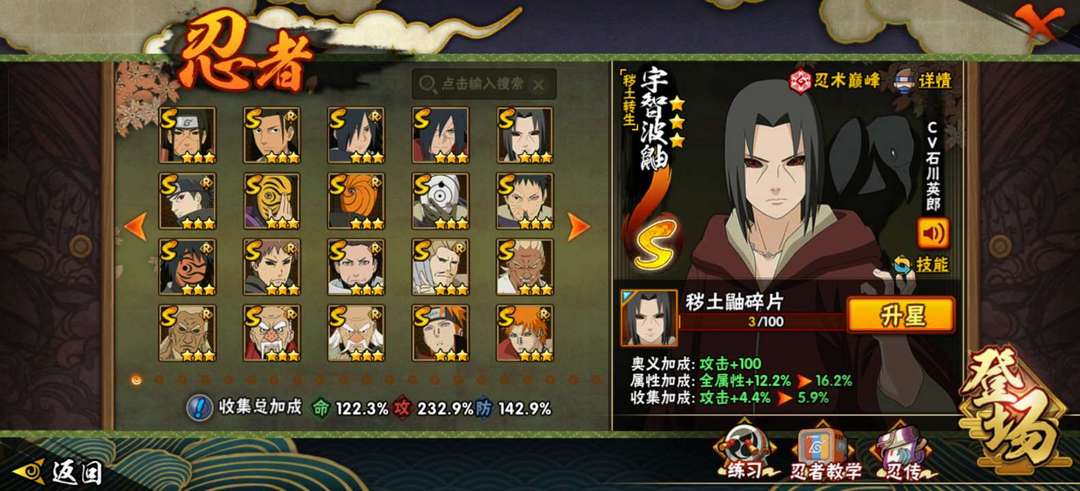 44S小胡子、白面具、创立柱间、创立斑、秽土鼬、须佐止水、金式、桃式等