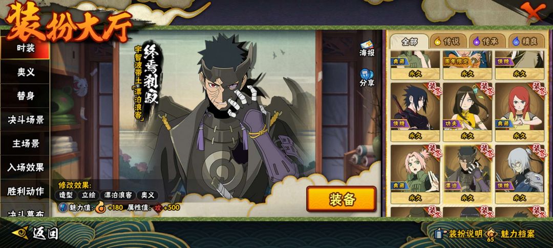 漂泊团藏带皮肤✨神驹斑✨十尾带土✨3300w战力✨54S✨103A✨侠隐佐助全套✨超多氪金忍者