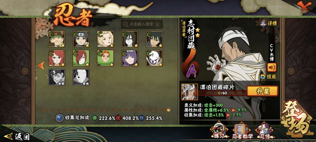 全忍者❤️漂泊团藏全套✨晓创生迪达拉全套✨4600w超核号✨全通灵全皮肤✨30个富贵奥义83级魅力值