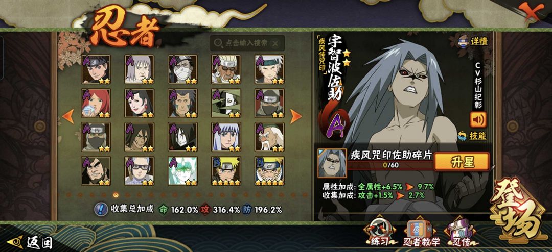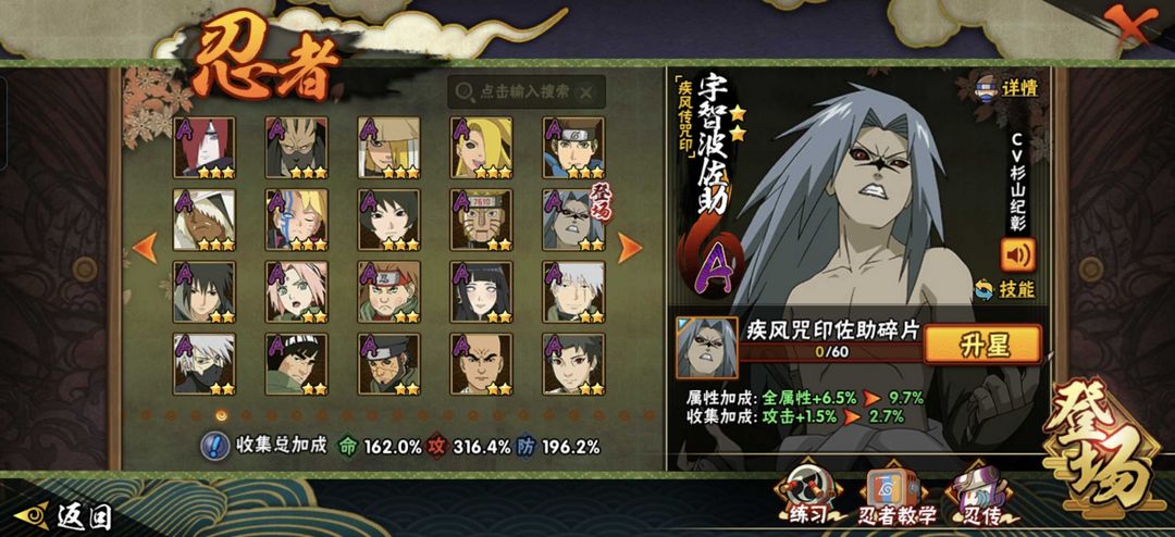 装备描述:1744万战力欢迎来到超影租号小店,火影能带来快乐也你带来自闭。有梦想你也许就是火影忍者下个超影♥ 账号如标题。忍者看上图。不要动金币跟高招卷。 。账号可以段位赛。安卓区。 喜欢的话点收藏。 祝你游戏愉快O∩_∩