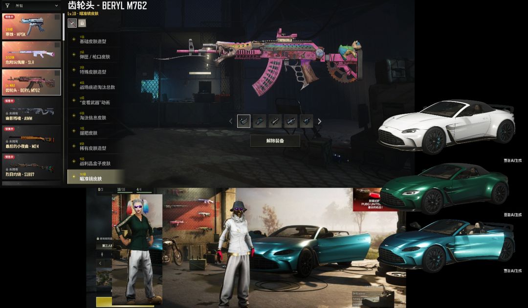 二级密码987654可排满级⑩级火麒麟M762⚛️③玩偶SLR①寒蚀MP5K多色阿斯顿马丁跑车小丑女