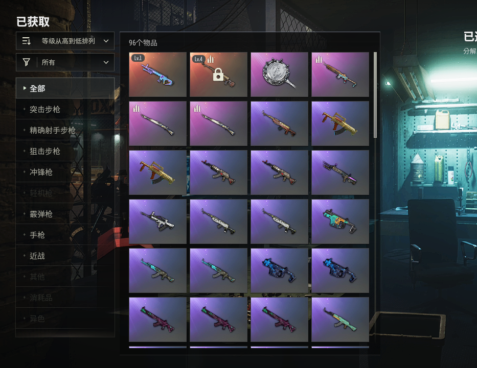 ④级时光加农SKS✅①级魔咒之力MK12✅鎏金王朝M762✅破碎元素AKM✅金色落叶SKS✅水手SL