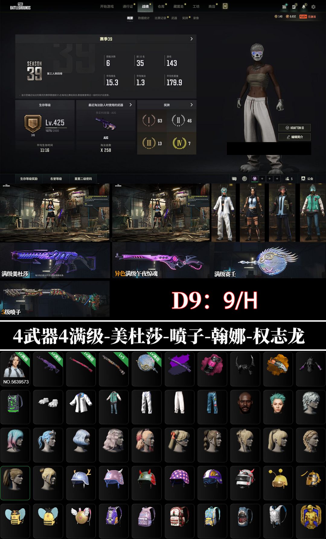 5神器5满⭐满级翰娜美杜莎⑩异色午夜惊魂⑩喷子⑤赛壬⑩黑鬼权志龙星魂电磁包牛角发AUG青龙762异色