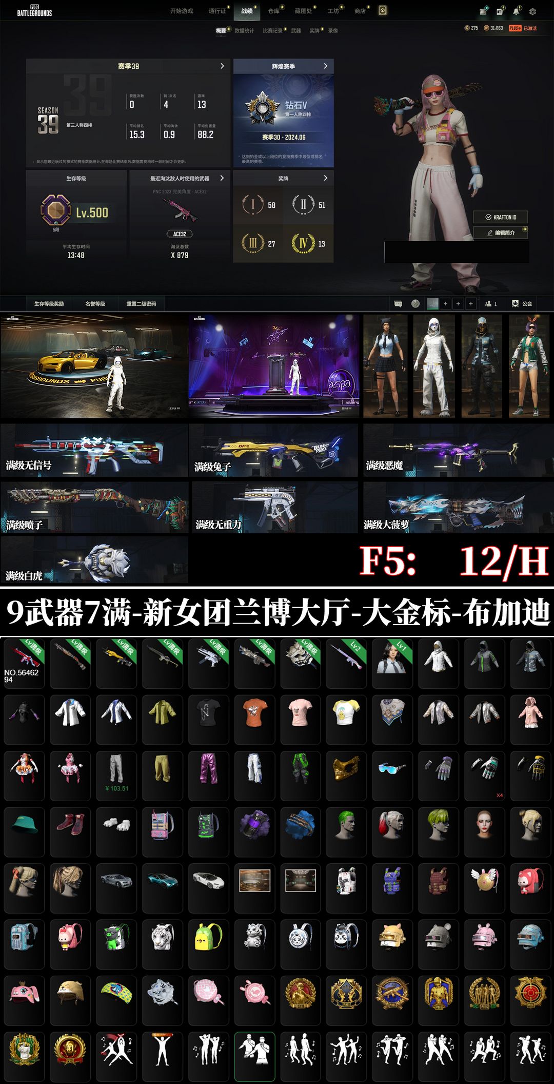 装备描述:看右上角信息拿备用码!!!!!!网吧电脑重启再玩以防外挂残留!请勿击杀队友,开挂,鼠标宏芯片,分解饰品,恶意毁号。违反者必定拉黑,平台封杀。互联网制时代,切勿以身试法。 24小时在线监控,违反规定直接扣所有租金并踢下线,被封必追究法律责任。温馨提示~不可利用此号行骗、卡BUG、恶意击杀队友、使用或浏览外挂等第三方软件~违反将会扣押金及租金~电脑有外挂第三方的请勿租用。杜卡迪-迈凯伦-兰博基尼-阿斯顿马丁-青龙M72-美杜莎-异色AUG-火麒麟-柏林-可排位时光加农SKS魔咒之力MK12塞壬平底锅刻耳柏洛斯M249美杜莎BERYLM762弥诺陶洛斯AUG午夜惊魂KAR98K无重力MP5K-无信号M416德拉贡诺夫爆裂AUG沙悟净MINI14猪八戒孙悟空M24圣诞AKM小兔巡逻队MK12危险玩偶屋SLR霓虹之梦 AUG武SKS青龙M762朱雀M416恶魔猎手ACE彩虹之上M24黑暗深渊M762危机MK12猛虎猎手KAR98K铃儿响叮当MiNI14不给糖就捣蛋锯齿收割者齿轮头M762妖魔之触 ACE32柏林黑东红东战神白运动裤J9哔站菠萝大魔王手套丑男丑女大金标网鱼白运动喷子S1897权志龙