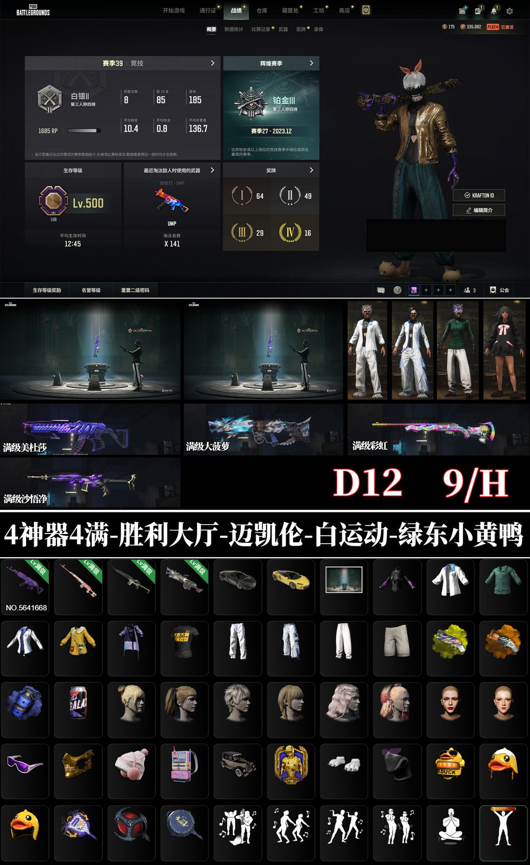 装备描述:看右上角信息拿备用码!!!!!!网吧电脑重启再玩以防外挂残留!请勿击杀队友,开挂,鼠标宏芯片,分解饰品,恶意毁号。违反者必定拉黑,平台封杀。互联网制时代,切勿以身试法。 24小时在线监控,违反规定直接扣所有租金并踢下线,被封必追究法律责任。温馨提示~不可利用此号行骗、卡BUG、恶意击杀队友、使用或浏览外挂等第三方软件~违反将会扣押金及租金~电脑有外挂第三方的请勿租用。杜卡迪-迈凯伦-兰博基尼-阿斯顿马丁-青龙M72-美杜莎-异色AUG-火麒麟-柏林-可排位时光加农SKS魔咒之力MK12塞壬平底锅刻耳柏洛斯M249美杜莎BERYLM762弥诺陶洛斯AUG午夜惊魂KAR98K无重力MP5K-无信号M416德拉贡诺夫爆裂AUG沙悟净MINI14猪八戒孙悟空M24圣诞AKM小兔巡逻队MK12危险玩偶屋SLR霓虹之梦 AUG武SKS青龙M762朱雀M416恶魔猎手ACE彩虹之上M24黑暗深渊M762危机MK12猛虎猎手KAR98K铃儿响叮当MiNI14不给糖就捣蛋锯齿收割者齿轮头M762妖魔之触 ACE32柏林黑东红东战神白运动裤J9哔站菠萝大魔王手套丑男丑女大金标网鱼白运动喷子S1897权志龙