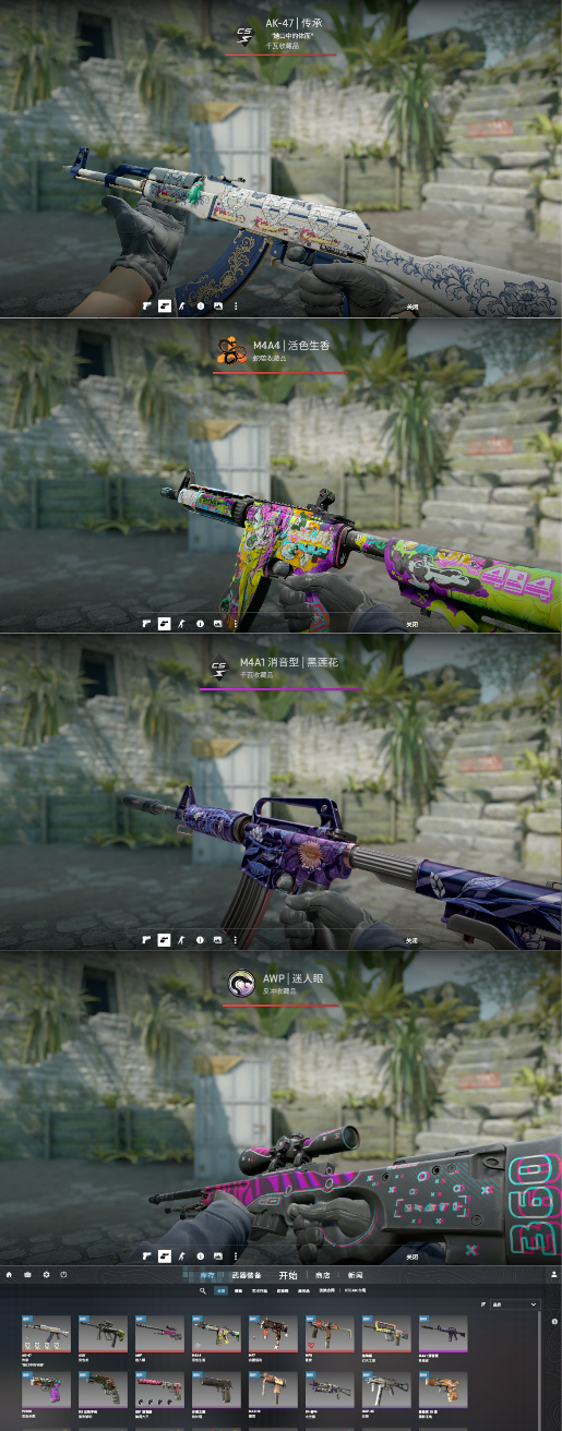 完美c+5e丶ak47传承丶m4活色生香丶awp迷人眼丶m4a1黑莲花丶超多主战齐全