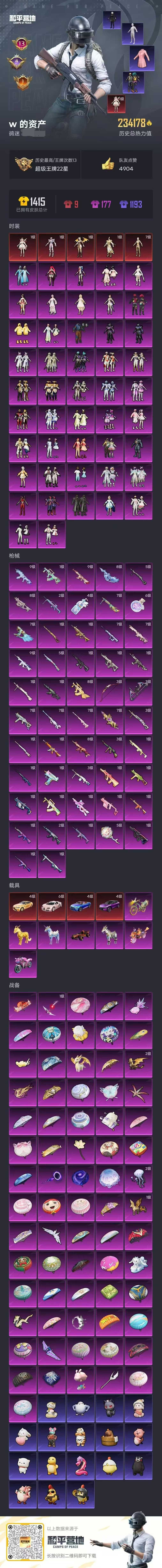满级新红装艾丽娅/12把9级特效枪均7级以上/6把新7级枪满级/4种不同载具类型均高级外观