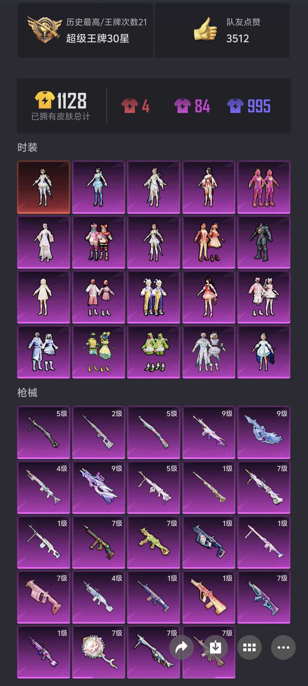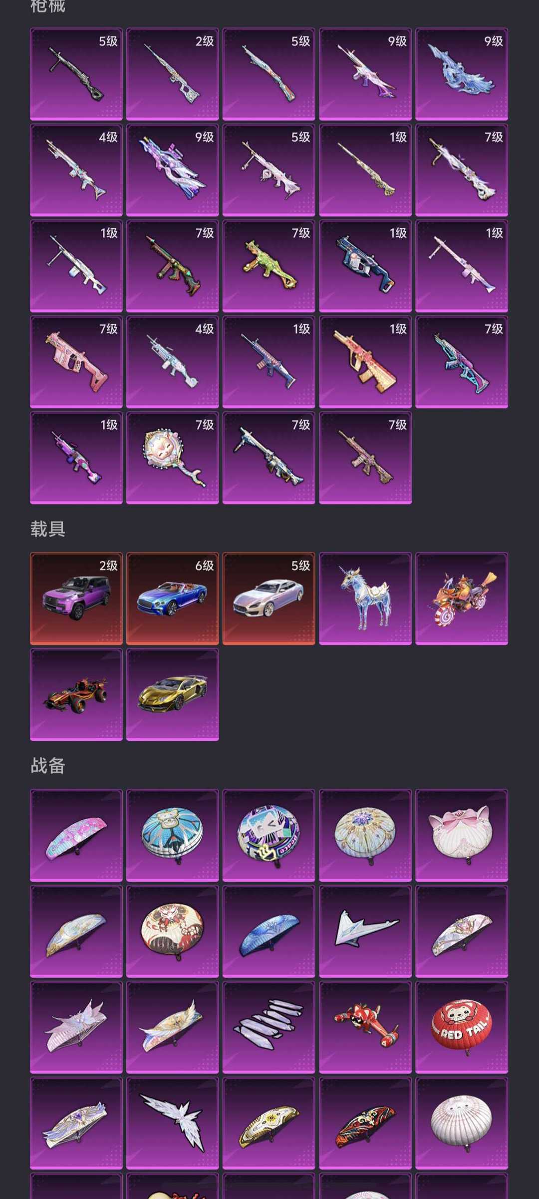 顶氪号✨4级欧若拉✨满级星梦奇缘时空协奏电糖天使✨满级宾利玛莎仰望✨裙子衣柜号11把满级枪
