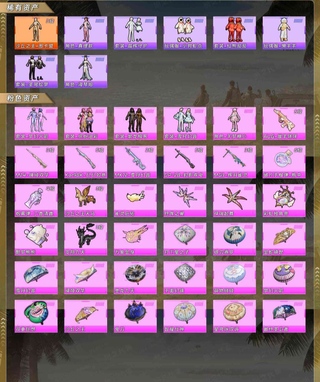 装备描述:!!部分皮肤未显示,以实际描述为准!! 本人已委托所在市区律所备案网络财产信息,任何因开挂诈骗等原因导致的账号封禁,一律报警并联合律所向法院起诉,若为高价值账号则可能触及刑法! 互联网并非法外之地,违规租号的个人信息随时可通过平台追查,绝不姑息,dma,鼠标宏,弱网,ai自瞄等外挂一律可查,追究到底!