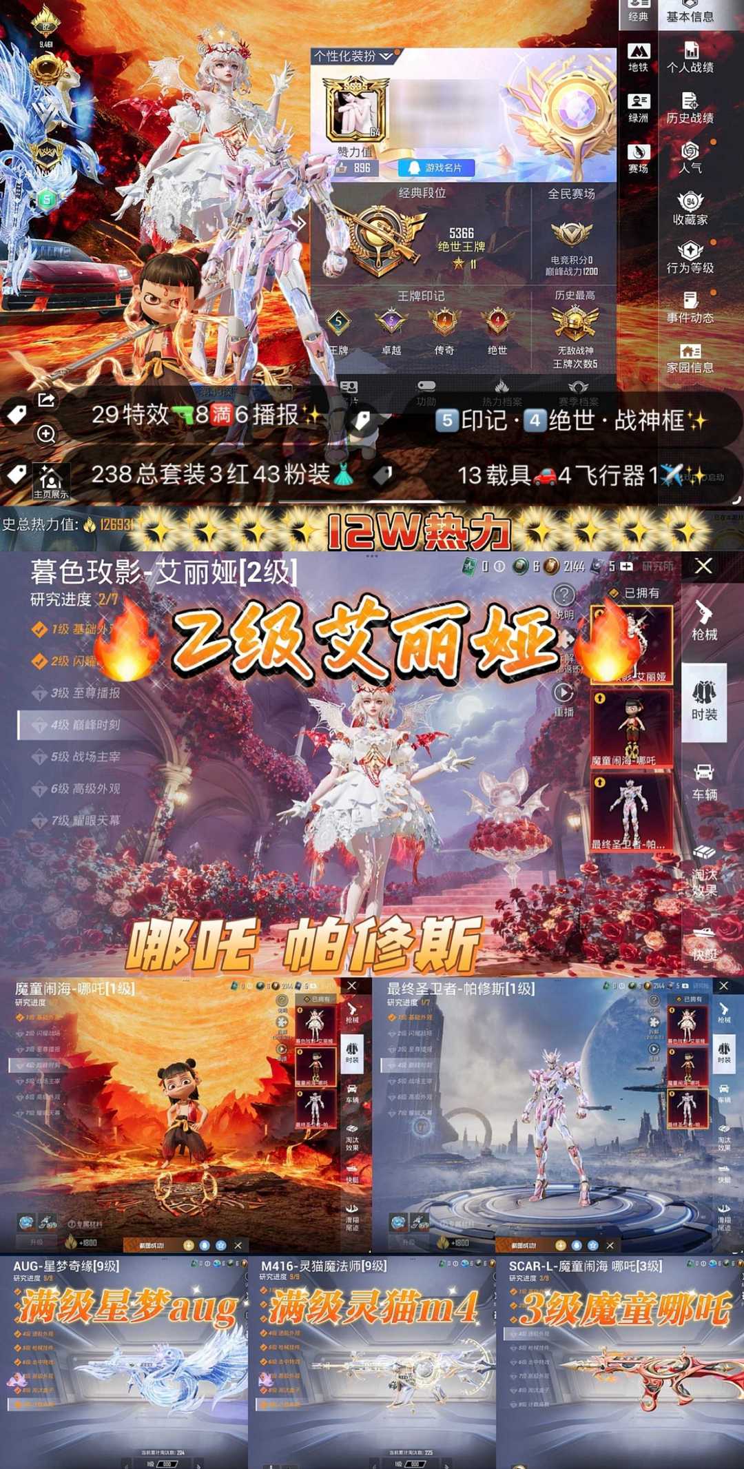 满天赋35战神特效⚡艾丽娅哪吒帕修斯⚡满素材S1猛男套⚡7把9级枪满级星梦奇缘灵猫魔法师哪吒闹海