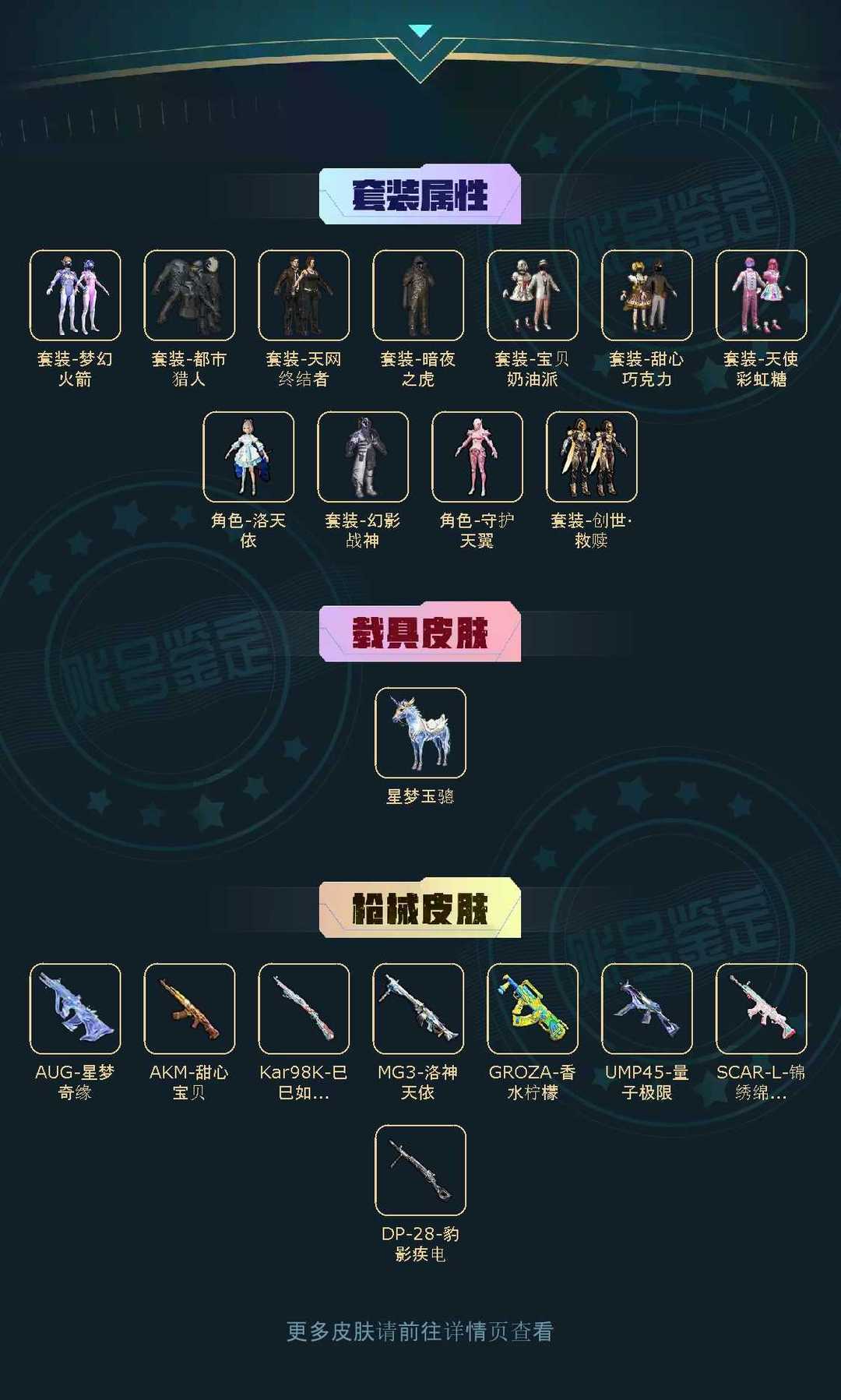 满级星梦奇缘/地铁满天赋/巧克力/火箭/都市/暗夜之虎/天网/洛天依/幻影/暗影哥特/奇异狩猎者