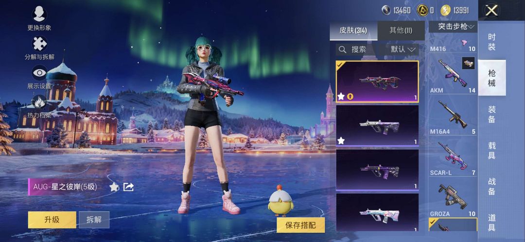 有巡查衣,五爪金龙,都市猎人,星之彼岸,7把升级枪5级的星之彼岸。满级的五爪金龙,6级的scar
