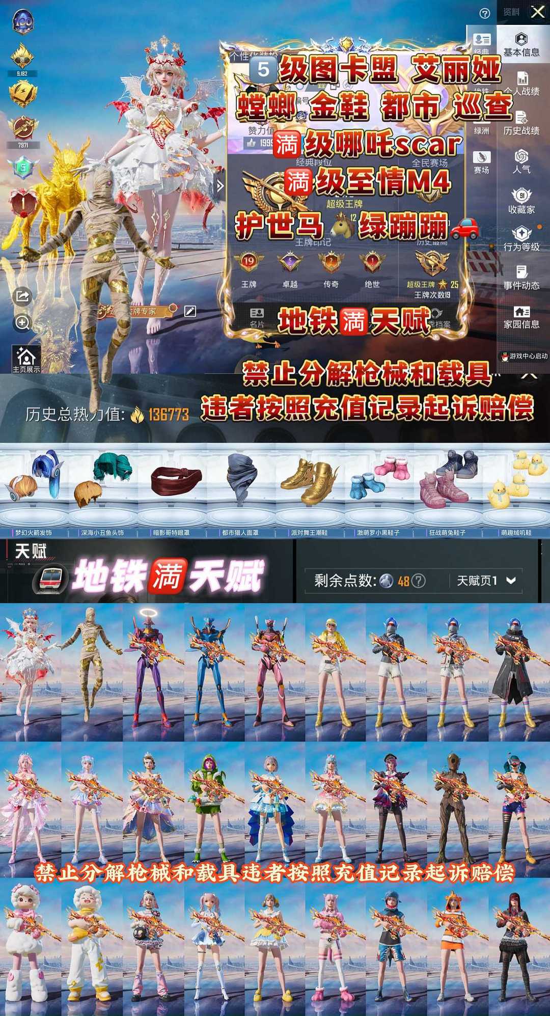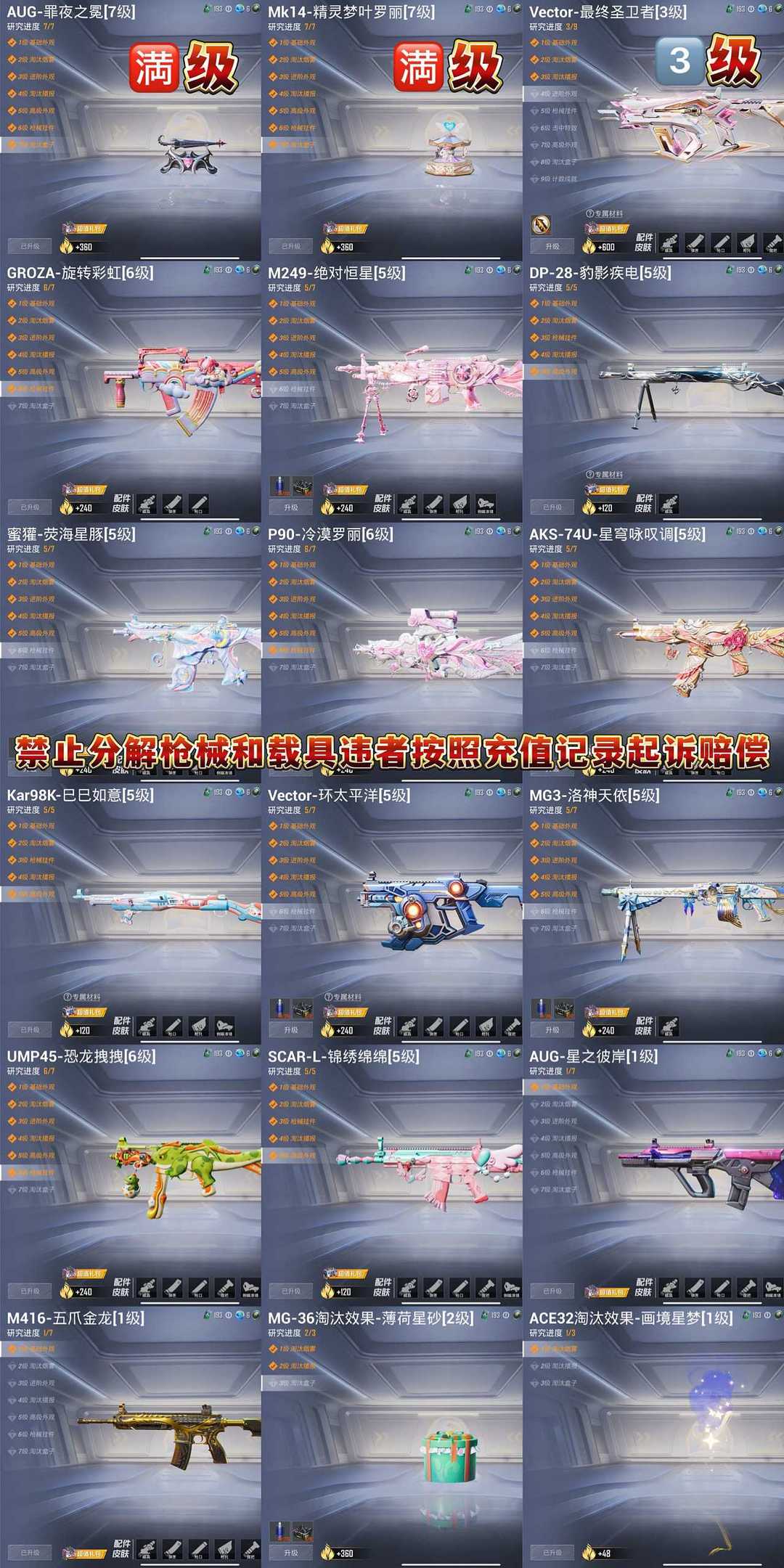 限制: 租号12次及以上 | 撤单率<60%才可租用此帐号装备描述:特别声明!!!! 分解枪械永久拉黑不解除 【乱投诉拉黑】有问题/上不去/其他问题/ 特殊需求/投诉没用等问题 账号累计充值超7万!切勿开挂/分解装备/恶意骂人/等等违规行为,发现违规必追查到底(平台登录记录,游戏登录ip手机号 设备串号 充值付款记录不要侥幸现在网警都能调到你的所有行为记录就算盗用他人信息也一样能查到你头上)按账号充值金额=起诉/刑事立案/追责赔偿! 非速玩【非云!本机设备畅玩不卡顿】