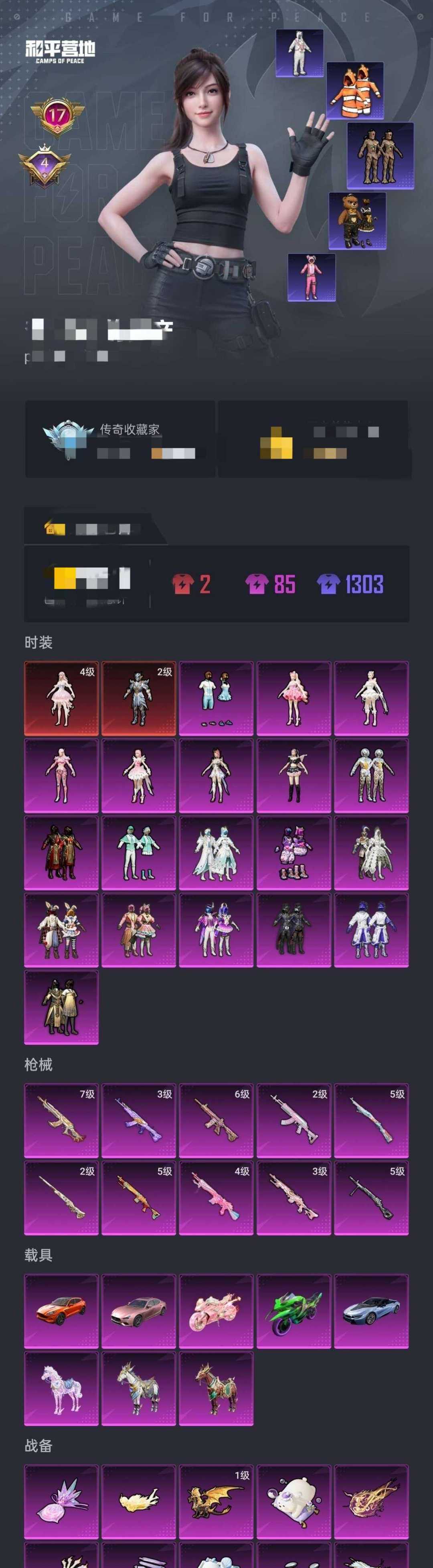 4级露米娜✨赵云➕19粉装➕10粉枪➕8载具❤️极品素材➕男神身法号❤️