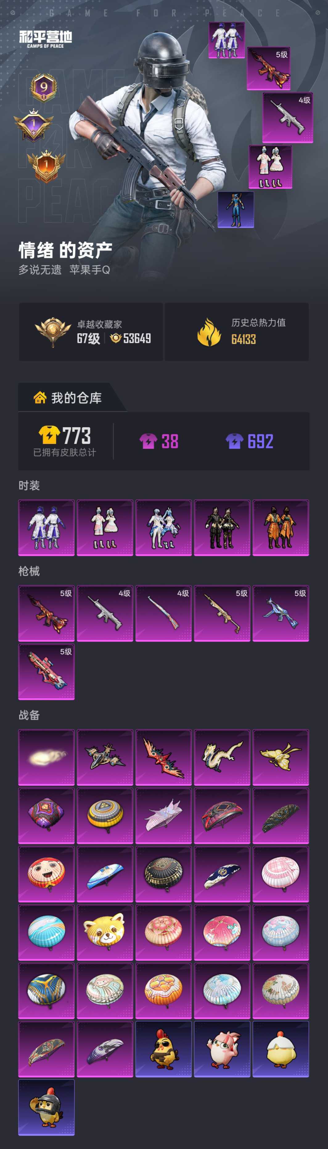 5粉套6升级枪⚡6万热力值⚡蓝螳螂⚡m4风花雪月⚡未来歌姬⚡密语绒猫⚡地铁高天赋点
