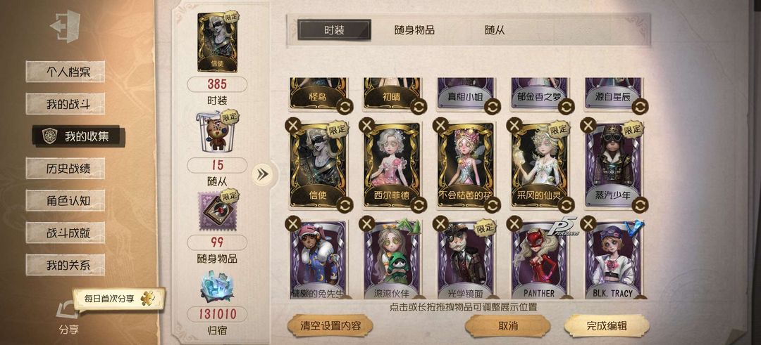 装备描述:真相小姐 采风的仙灵 胧夜 女巫二限 园丁小情