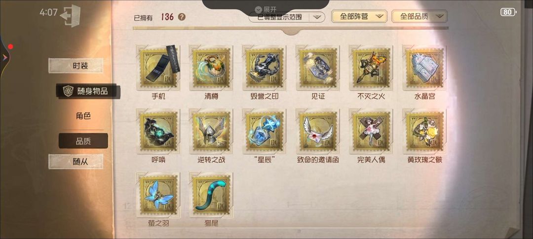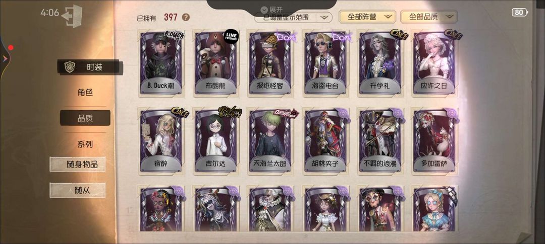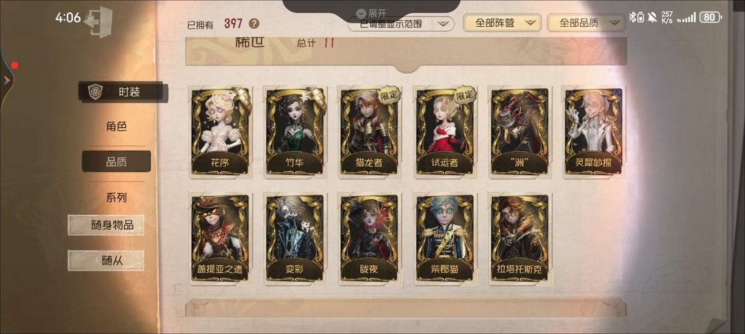 装备描述:猎龙者~试运者~灵犀妙探~盖提亚之遗~变彩~陇夜~竹华~花序~柴郡猫~拉塔托斯克~100紫